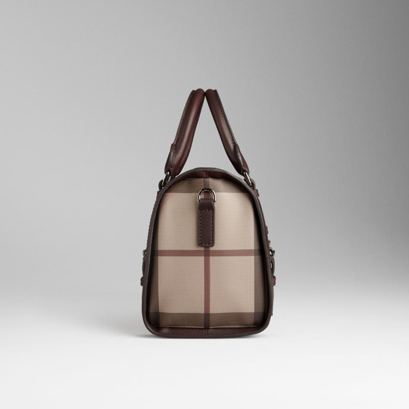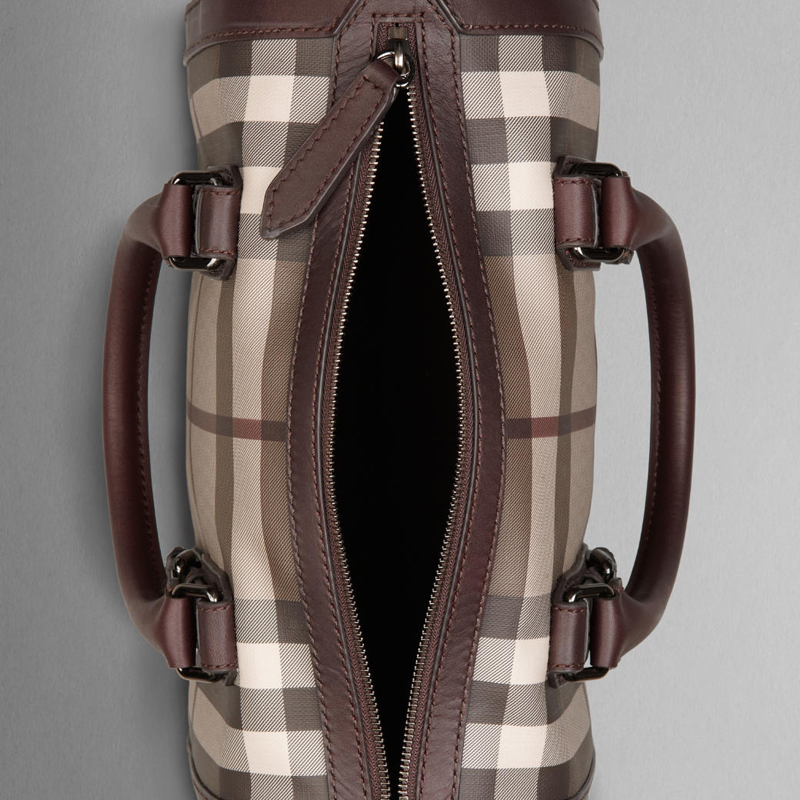 - Top zip closure, rolled leather handles and polished metal D-rings for shoulder strap