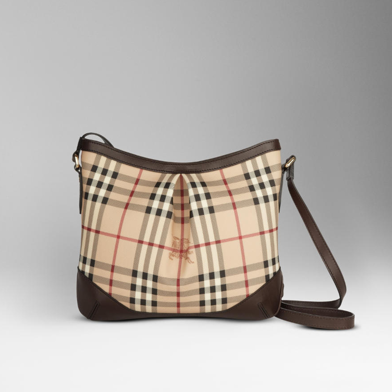 - Coated canvas crossbody bag in Haymarket check with leather trim
