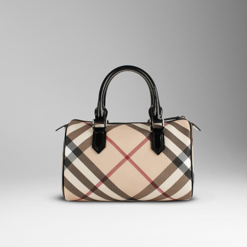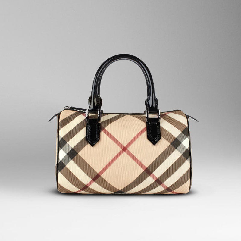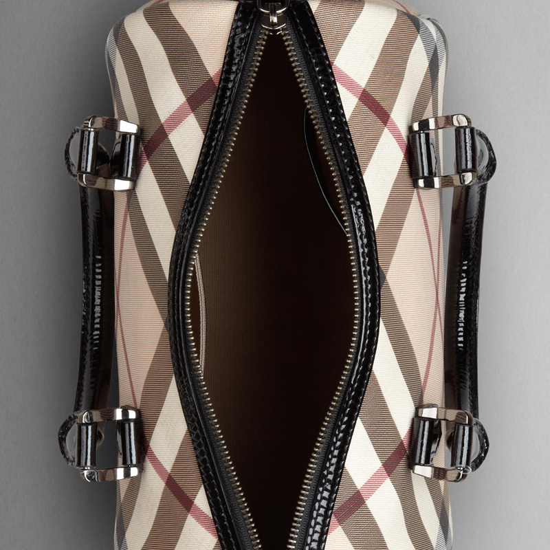 Nova check coated canvas bowling bag with patent leather trims