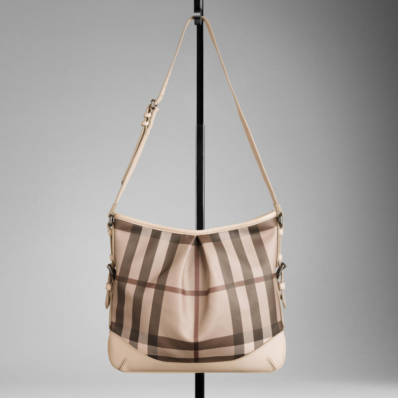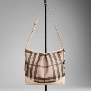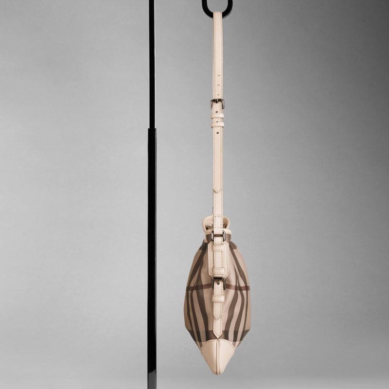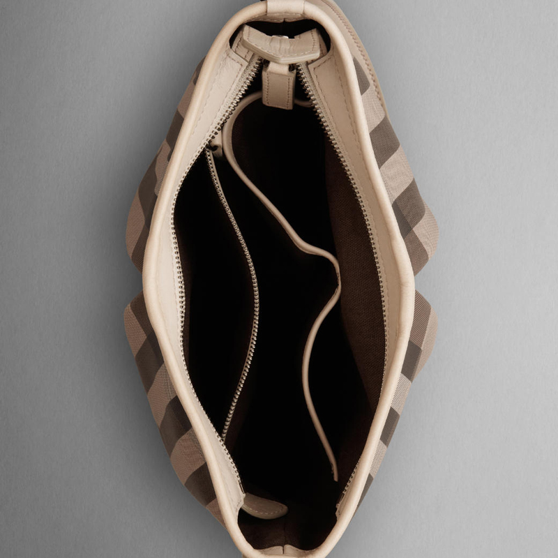 - Smoked check coated canvas crossbody bag with smooth leather trim