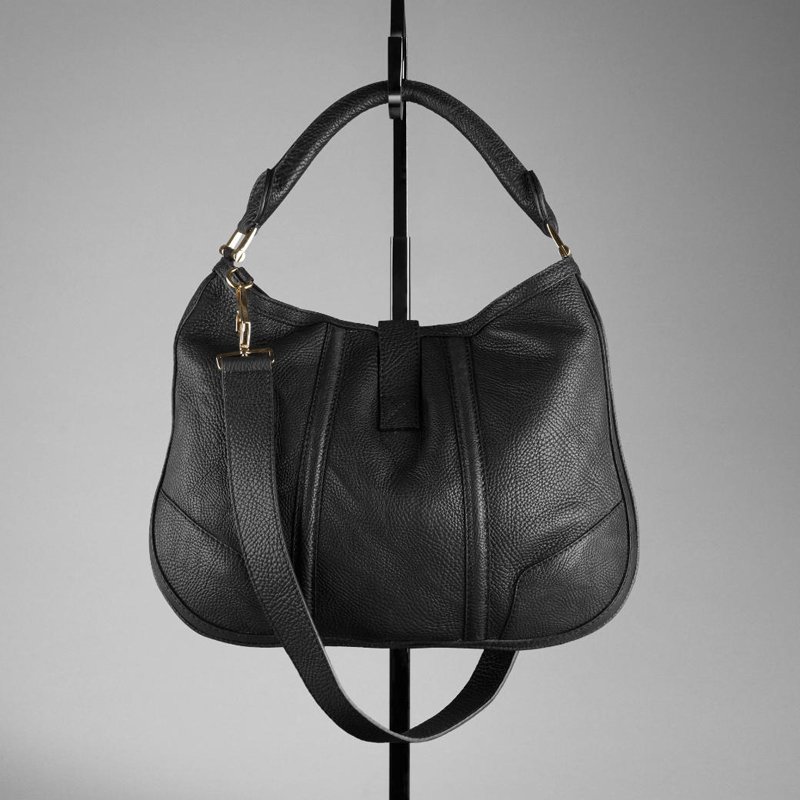 Grainy leather hobo bag with stitch detail