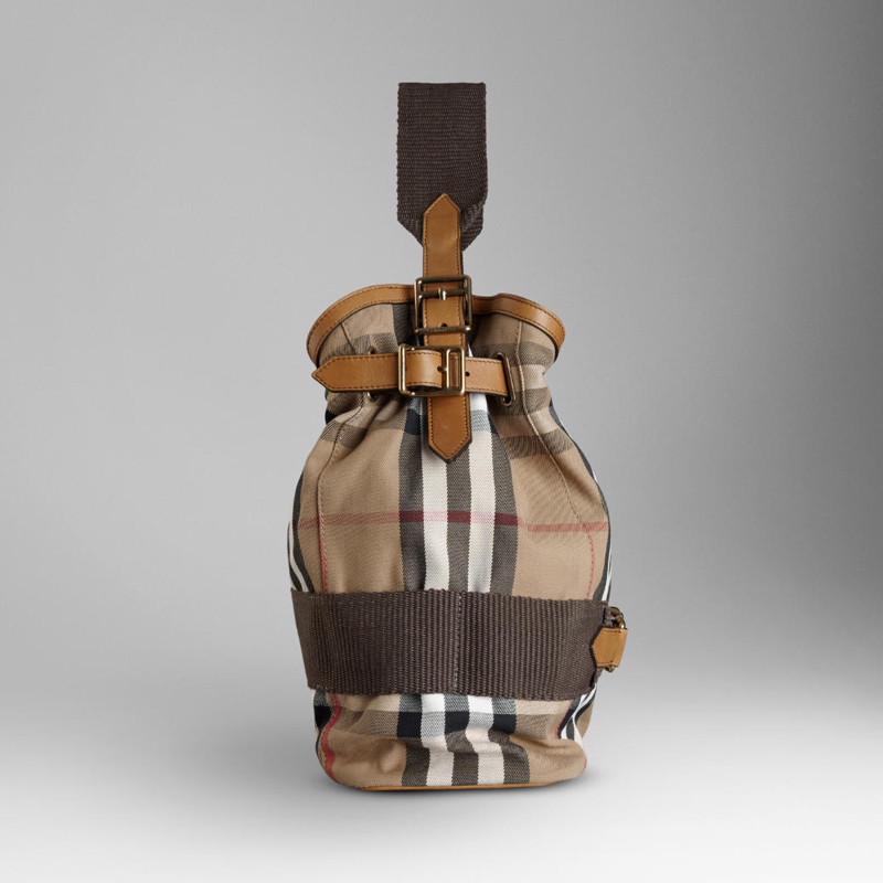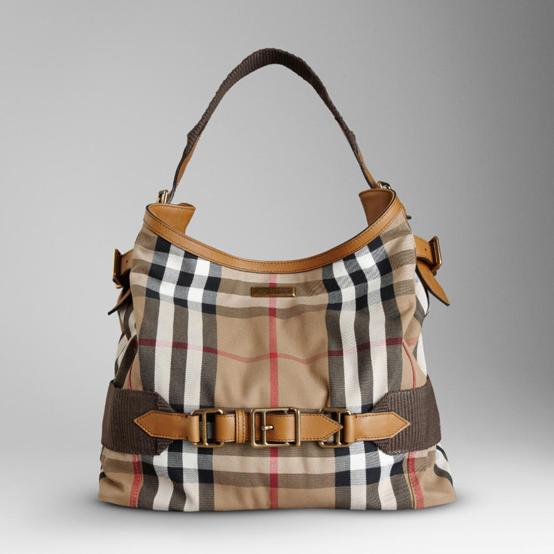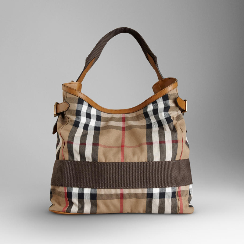 Medium vintage House check canvas hobo bag with smooth leather trims