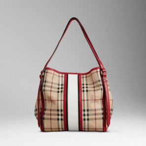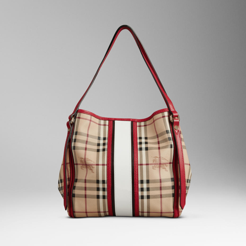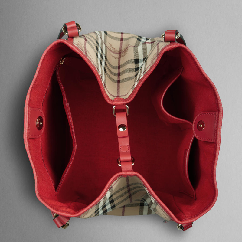 Haymarket check coated canvas tote bag with coloured leather centre panel