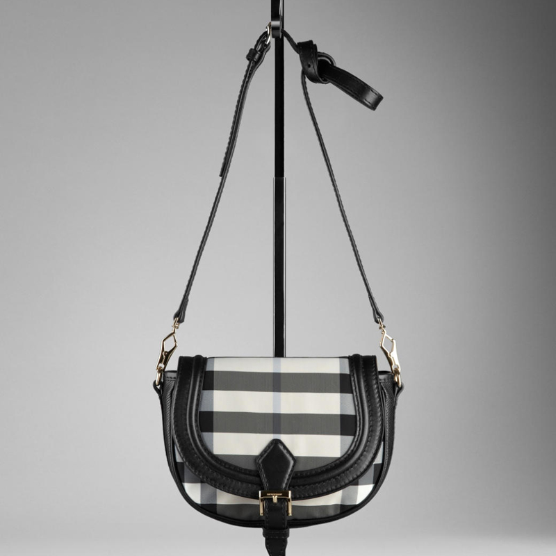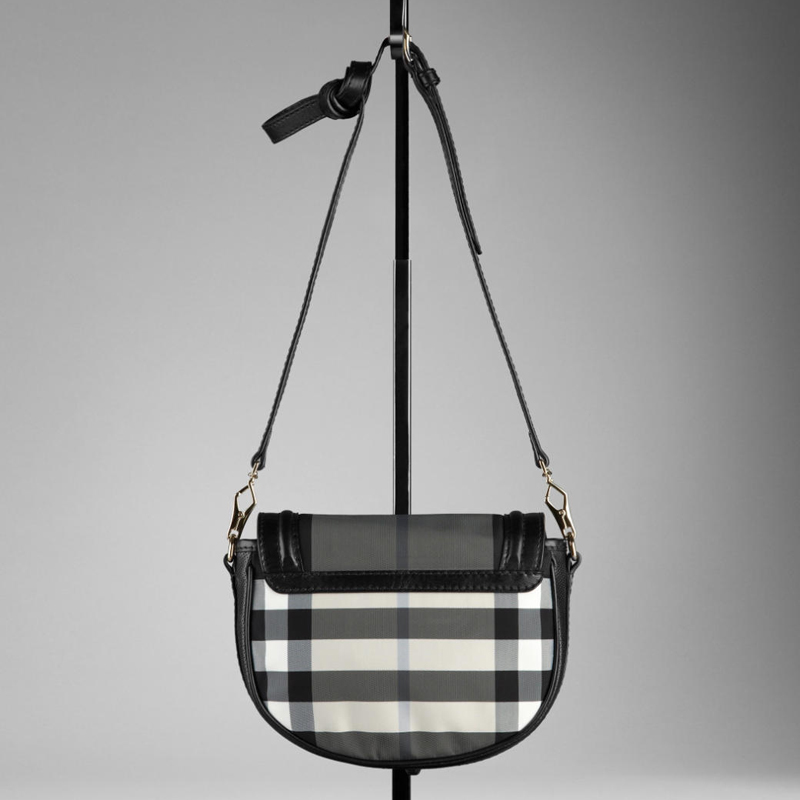 SMALL CHARCOAL CHECK CROSSBODY BAG.