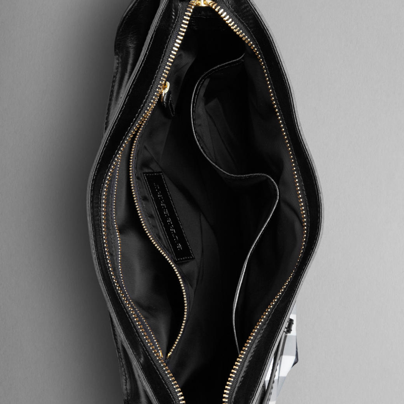 - Top zip closure, flat detachable crossbody strap, rolled shoulder strap