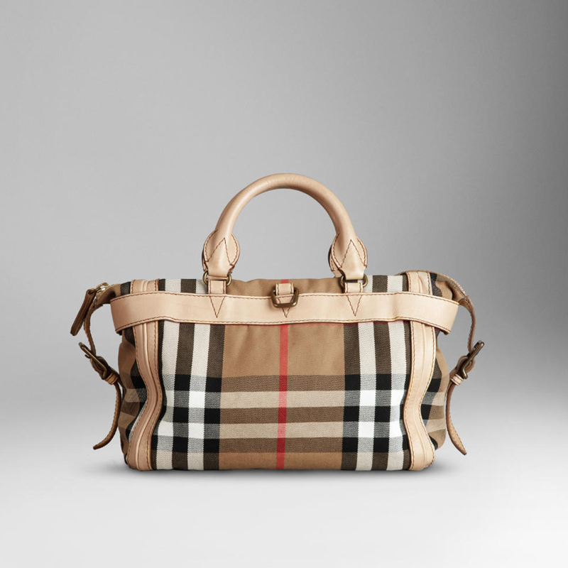 Check cotton bowling bag with leather trim