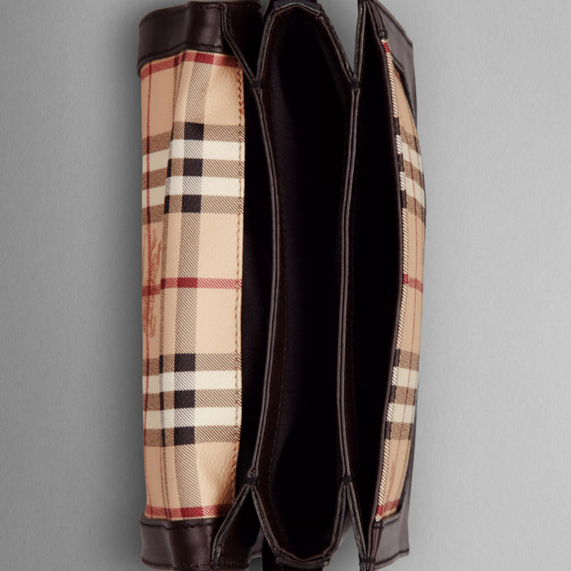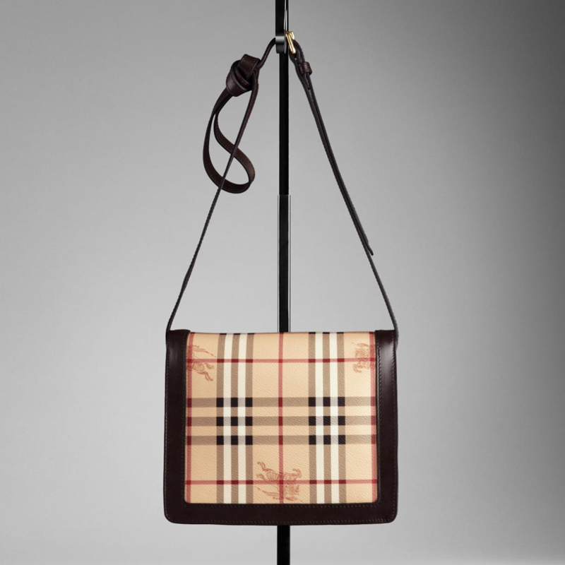 SMALL HAYMARKET CHECK BELTED CROSSBODY BAG.