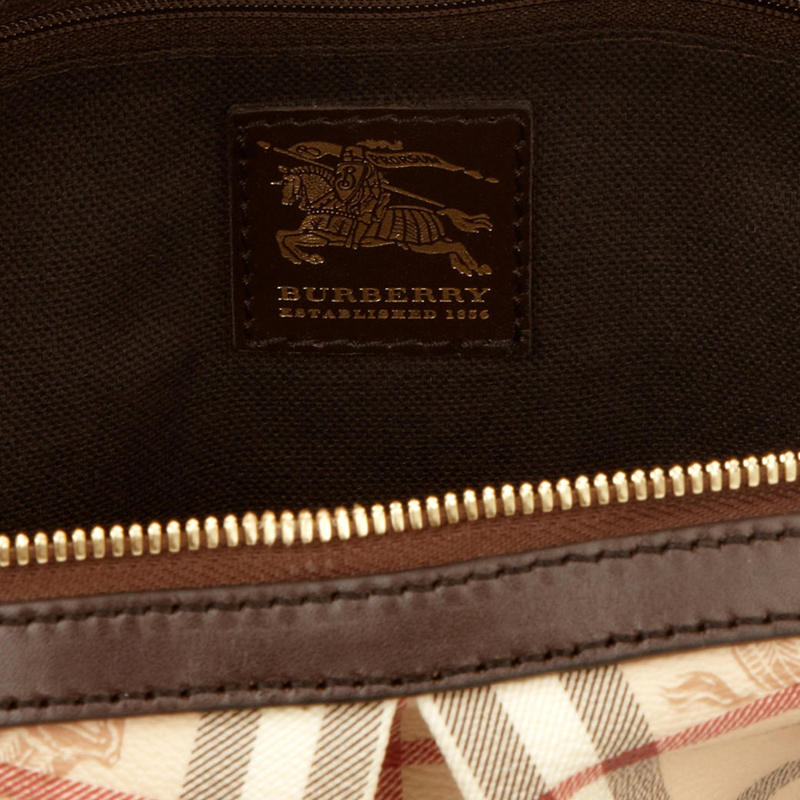 - Interior leather plaque branded with the 'Burberry established 1856' inscription