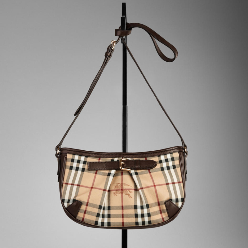 - Small Haymarket check coated canvas crossbody bag with smooth leather trim