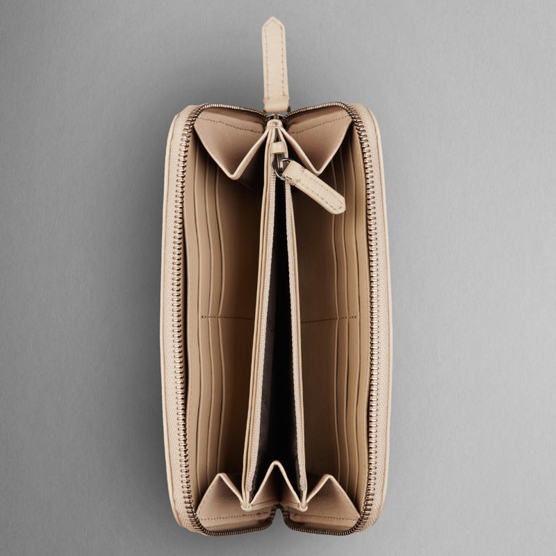 - Smooth leather trim, ziparound closure