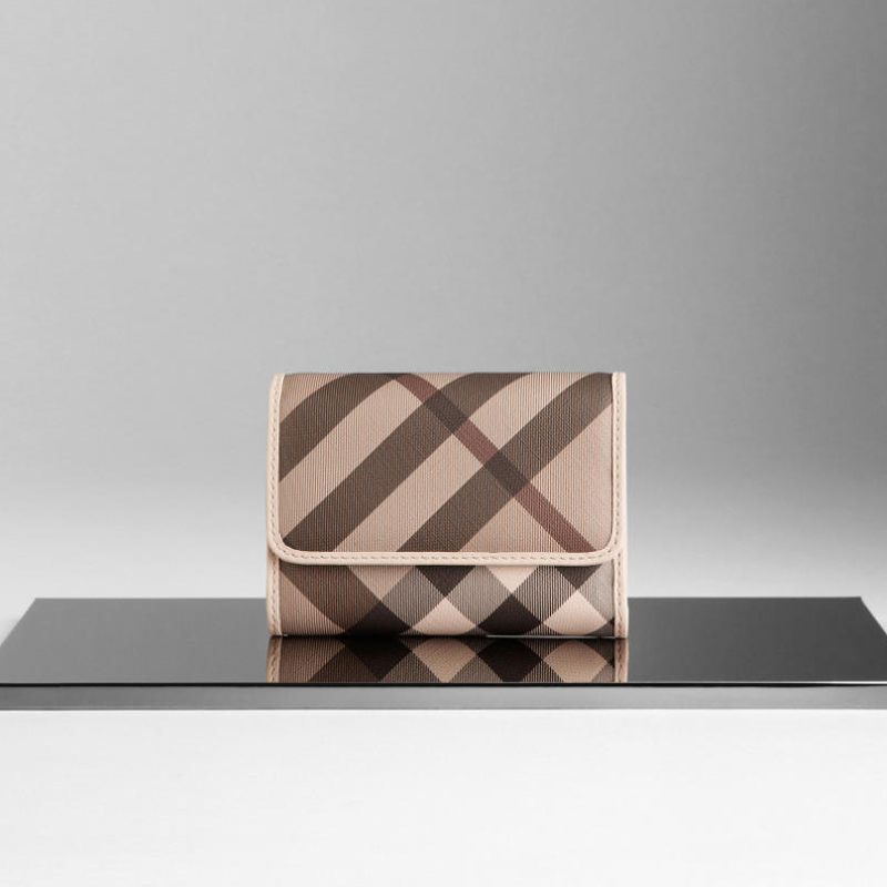 - Smoked check coated canvas folding ID wallet