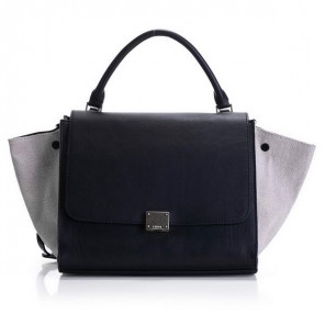 2012 Latest Celine Trapeze Bags Original Leather with Fabric 3342 Black Offwhite
