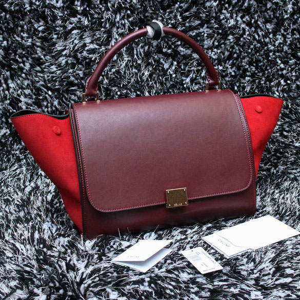 2015 Celine Trapeze Bag Original Leather C3345 Burgundy&Red