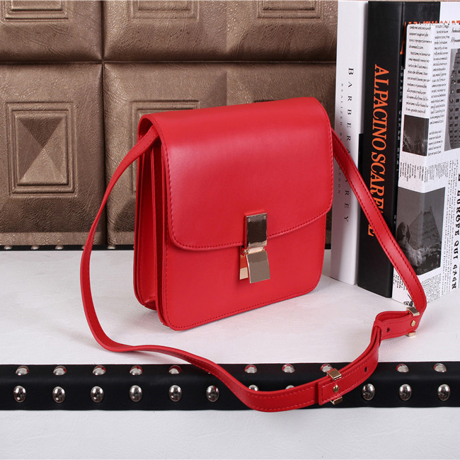 Celine Classic Box Small Flap Bag Lambskin Leather C3118 Red