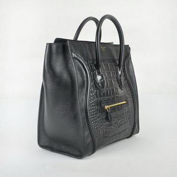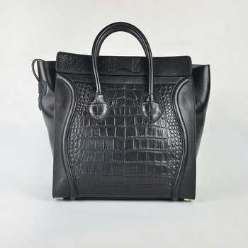 Celine Crocodile Grain Leather Handbag 98170 Black