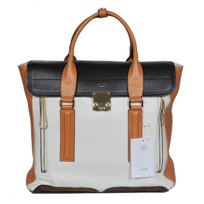 Celine Large Leather Top Handle Bag 231A Black/Beige/Coffee
