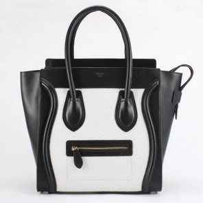 Celine Luggage Bags Medium in Lambskin Black White Come with serial numbers, Celine authenticity card, Celine dust bag and Celine care booklet
