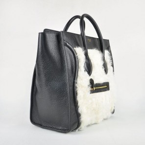 Celine Luggage Juboo Woman Handbag Black with Rabbit Hair