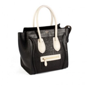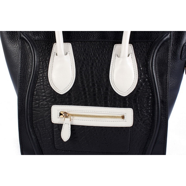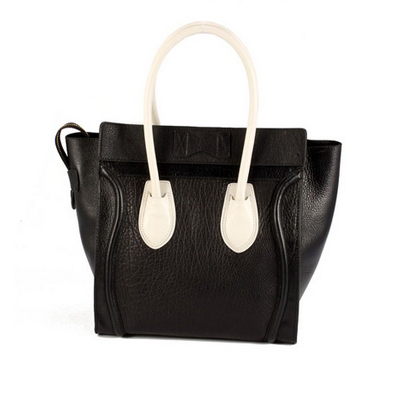 Celine Luggage Medium Handbags Black Rich White