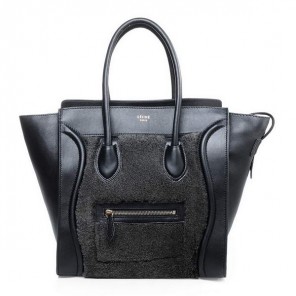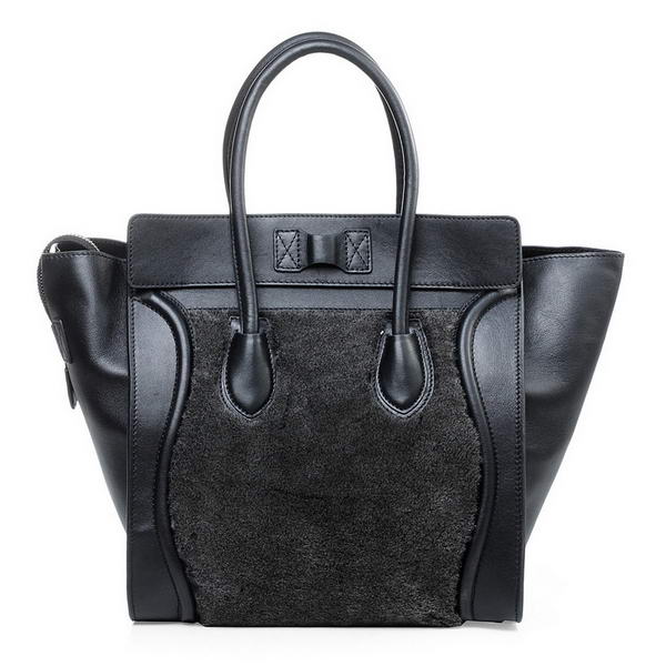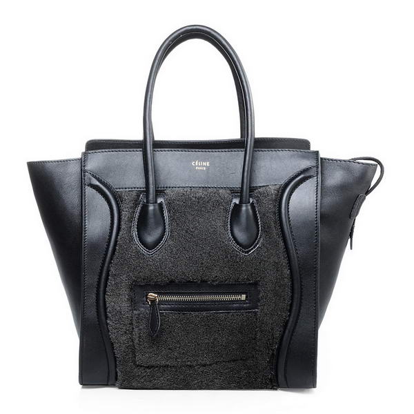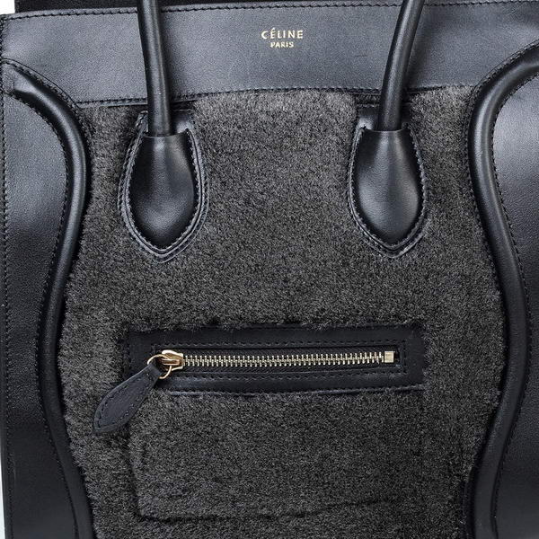 Celine Luggage Mini Boston Bag Lambswool Original Leather Black