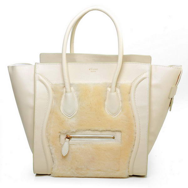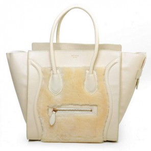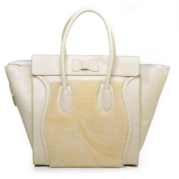 Celine Luggage Mini Boston Bag Lambswool Original Leather Offwhite