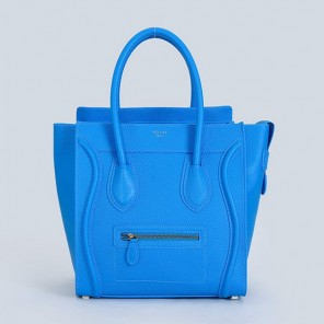 Celine Luggage Mini Boston Bags Clemence Calskin Leather Blue