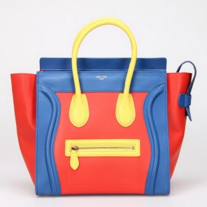 Celine Luggage Mini Boston Tote BagsCalskin Leather Peach&Blue