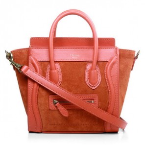 Celine Luggage Nano Bag Original Suede&Calf Leather Light Red