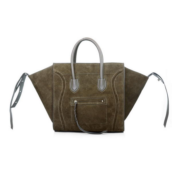 Celine Luggage Phantom Original Suede Leather Bags Khaki