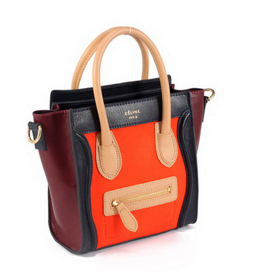 Celine Luggage small Fashion Bag Orange Black Maroon