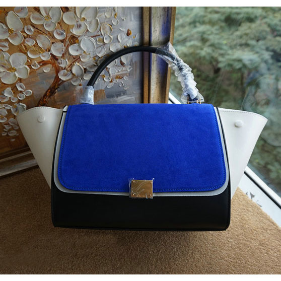 Celine Trapeze Bag Suede Leather C6608 Blue&Black&White