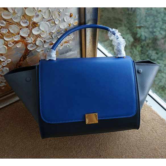 Celine Trapeze Tote Bag Ferrari Leather C6608 Blue&Gray