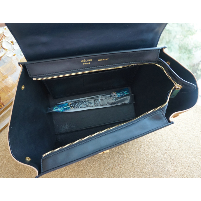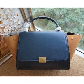 Celine Trapeze Tote Bag Suede Leather C6608 Royal&Black&Wheat