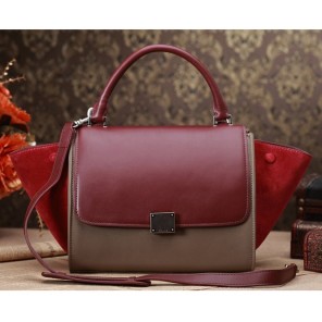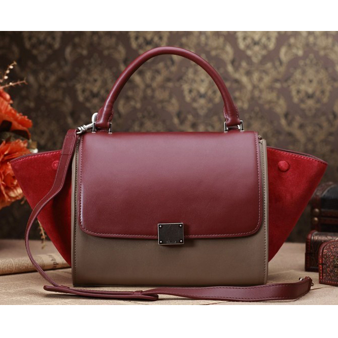 Celine mini Trapeze Top Handle Bag Original Leather 3342 Wine&Khaki