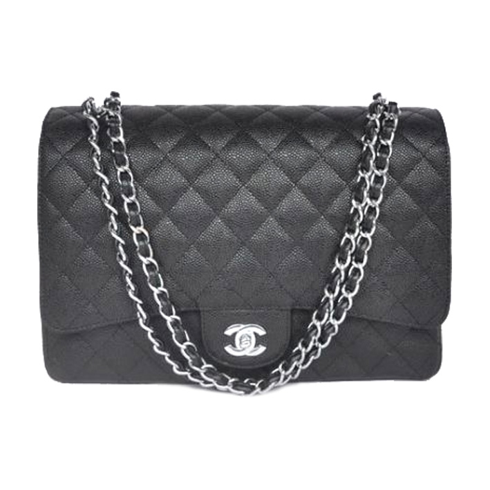 2013 Chanel Caviar leather Flap handbags 58601 silver chain Black Come with serial numbers, Chanel authenticity card, Chanel dust bag, Chanel Box and Chanel care booklet.