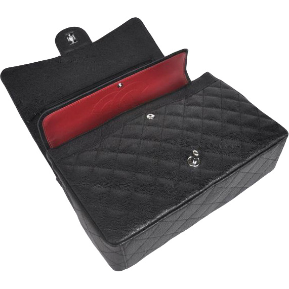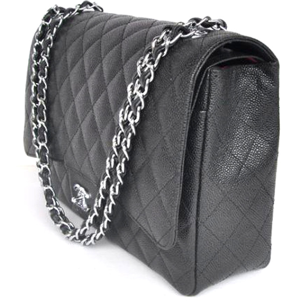 2013 Chanel Caviar leather Flap handbags 58601 silver chain Black