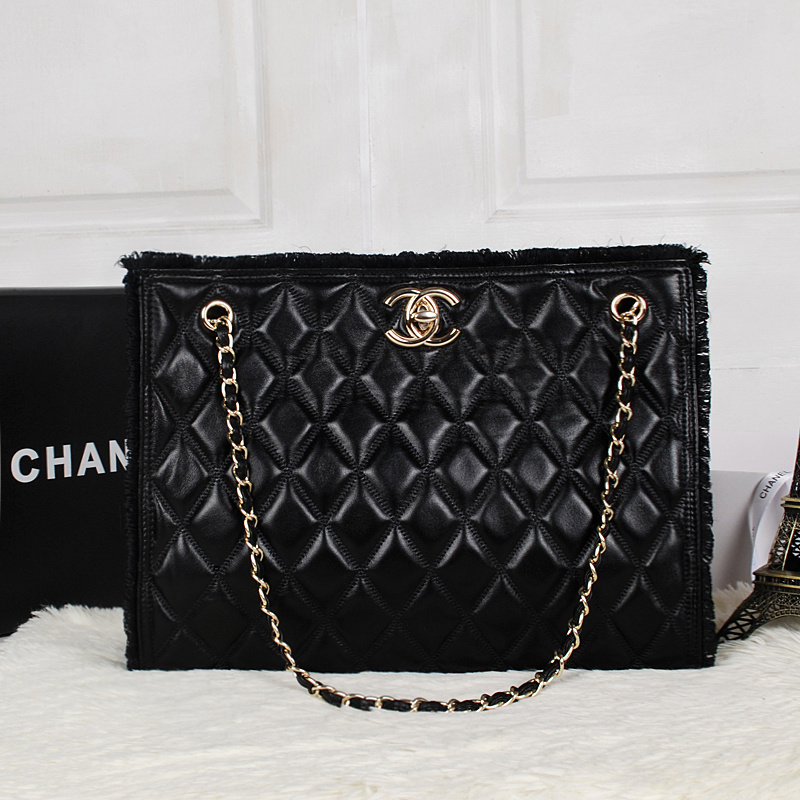 2013 Chanel Sheepskin Leather Shoulder Bag A21083 Black