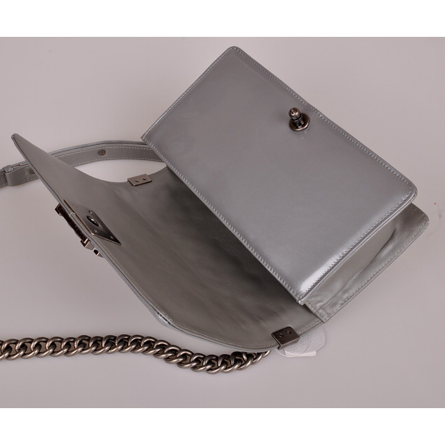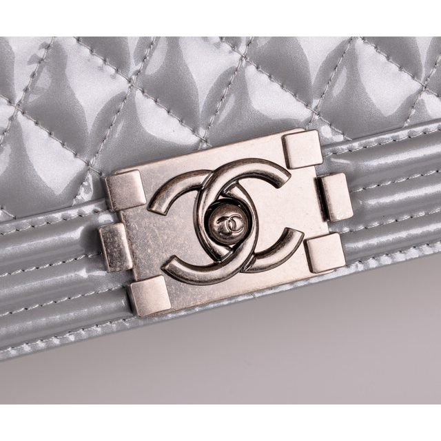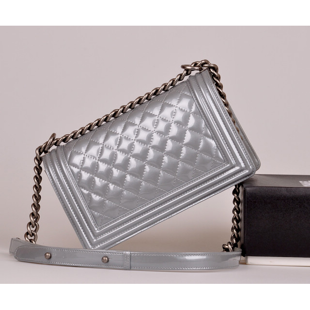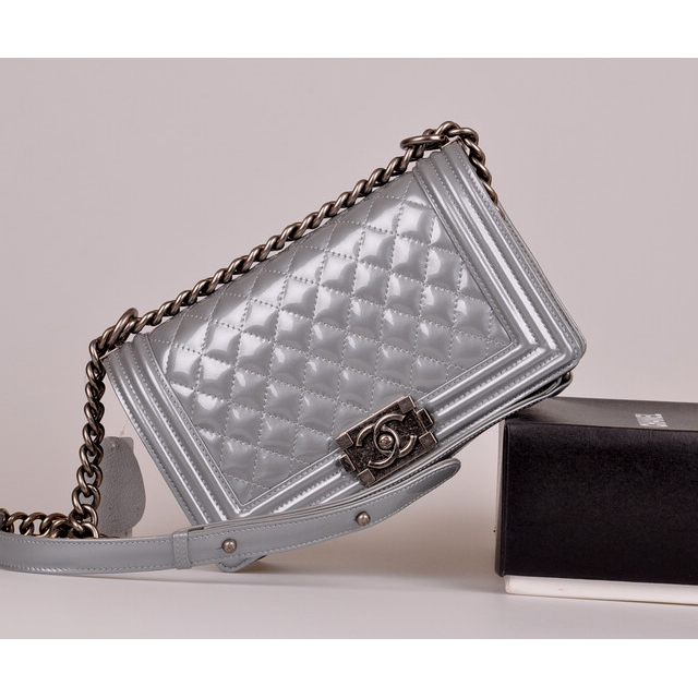 2014 Boy Chanel A67086 Flap Shoulder Bag Original Patent Leather Gray