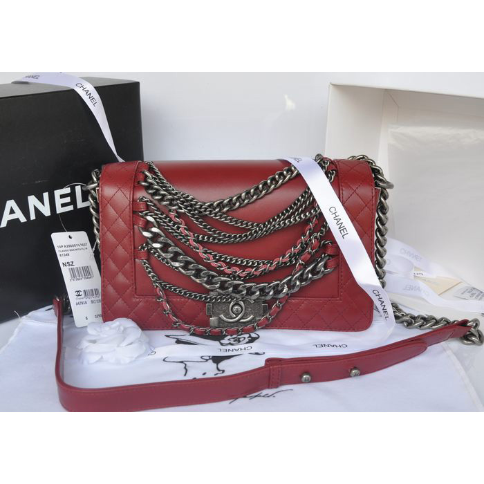 2014 Boy Chanel A67918 Claret Flap Shoulder Bag in Original Leather