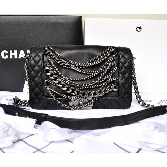 2014 Boy Chanel A67919 Black Flap Shoulder Bag in Original Leather