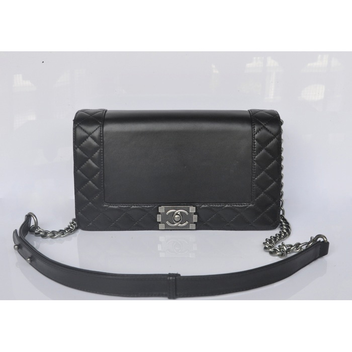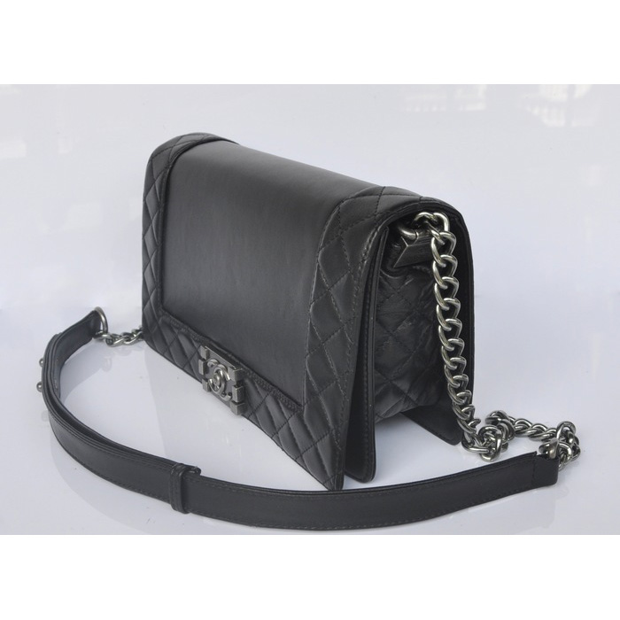 2014 Boy Chanel A67949 Black Flap Shoulder Bag in Sheepskin Leather