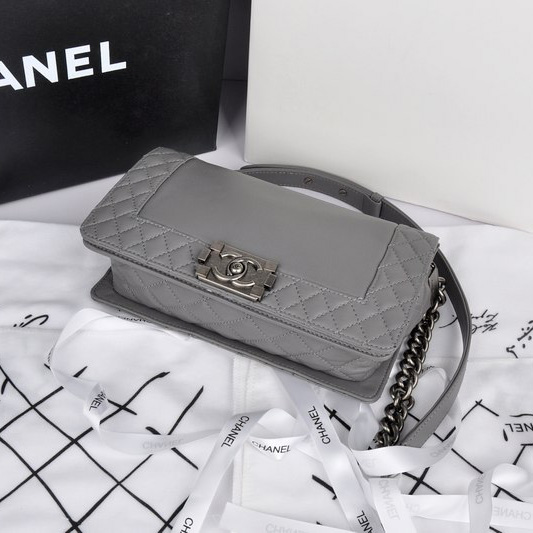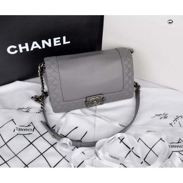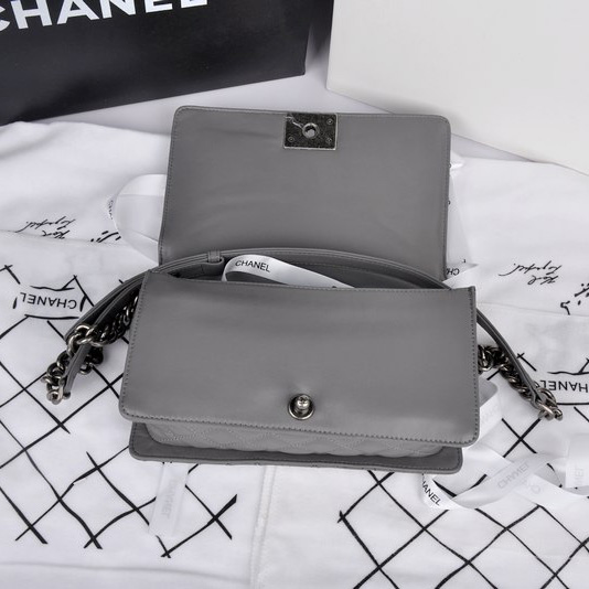 2014 Boy Chanel A67949 Gray Flap Shoulder Bag in Original Leather