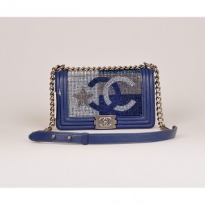 2014 Boy Chanel Dallas Flap Shoulder Bag Sheepskin A92480 Blue