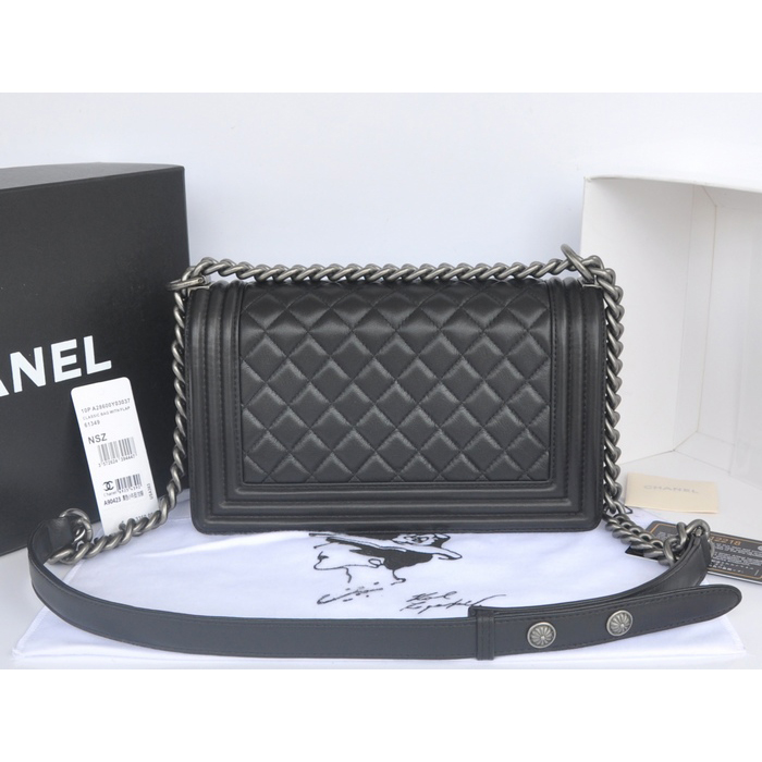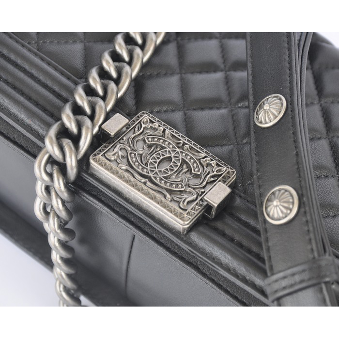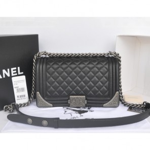 2014 Boy Chanel Flap Bag Embellished with Metal Adornments A90423 Black