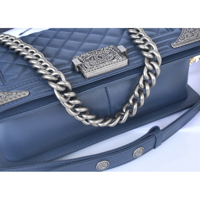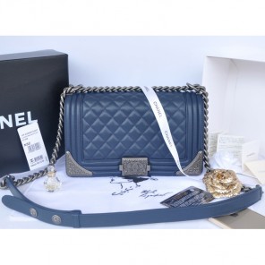 2014 Boy Chanel Flap Bag Embellished with Metal Adornments A90423 Royal