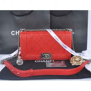 2014 Boy Chanel Flap Shoulder Bag Calfskin Leather A92350 Red