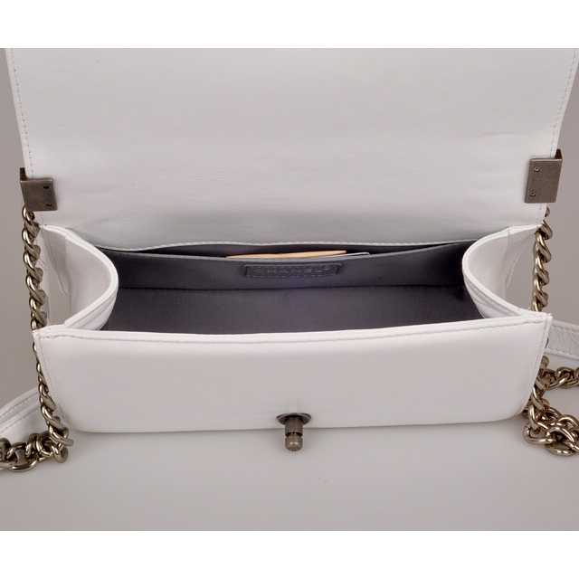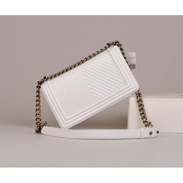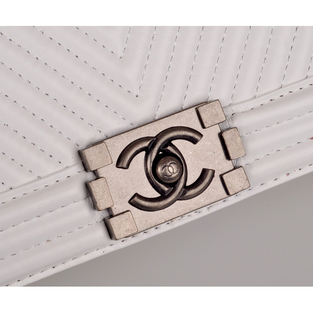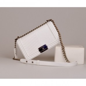 2014 Boy Chanel Flap Shoulder Bag Herringbone Stitching A92493 White