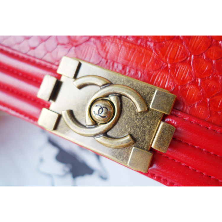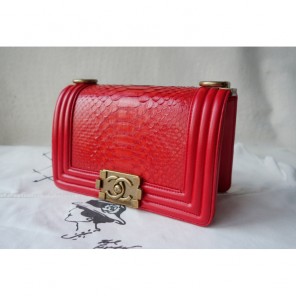 2014 Boy Chanel Flap Shoulder Bag Python Leather A66094 in Red