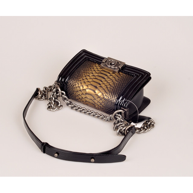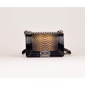 2014 Boy Chanel Flap Shoulder Bag Snake Leather A67024 Black