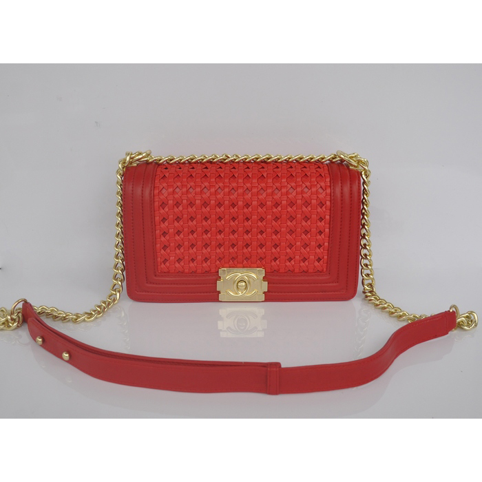 2014 Boy Chanel Flap Shoulder Bag Weave Leather A90181 Red